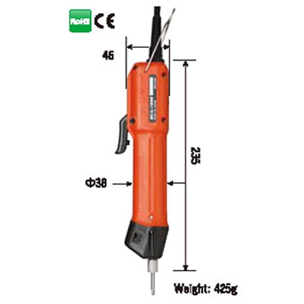 Avvitatore elettrico con regolazione della coppia di serraggio da 0.2 a 1.2 Nm, senza spazzole (brushless), leggero, economico, ed alimentato dall'unità di controllo ed alimentazione modello T-70BL-EU-HK (venduta separatamente).