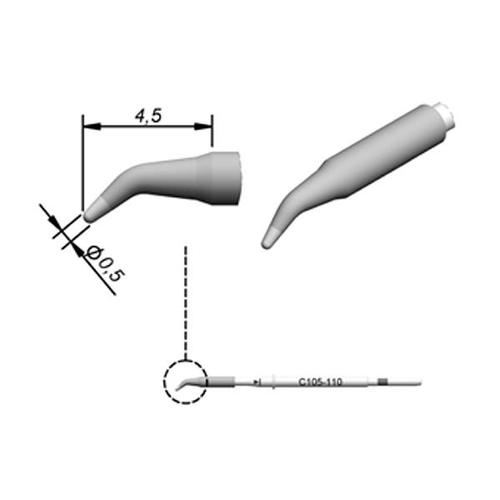 NanoPunta saldante a forma conica curva Ø 0.5 mm da utilizzarsi sul nanosaldatore NT105 oppure sulla nanopinza termica NP105 (in questo caso servono due punte per il corretto funzionamento della nanopinza termica).