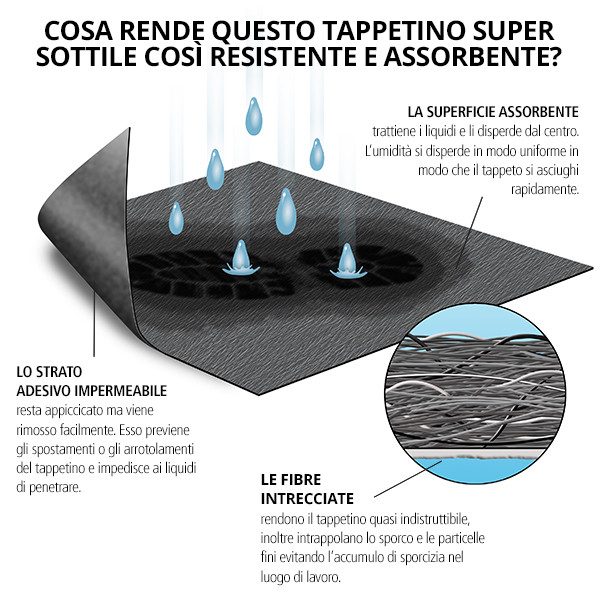 ● Facile da personalizzare: permette di creare tappetini di dimensioni personalizzate per aree di passaggio e punti con problemi di bagnato.