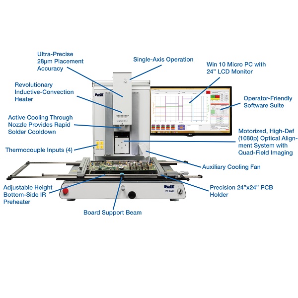With its groundbreaking, patent-pending Inductive-Convection Heating Technology, the TF 2800’s top-side heater reaches the target temperature in just seconds for safe, rapid solder joint reflow in virtually any component installation or removal application.