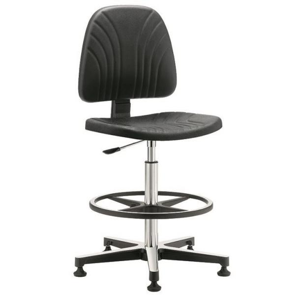 Sgabello antistatico ESD con piedini e poggiapiedi regolabile. Regolazione colonna a gas 200mm - altezza sedile da 50cm a 70cm. CEPEITALIA, banco di lavoro e complementi, sedie antistatiche sgabelli laboratorio.